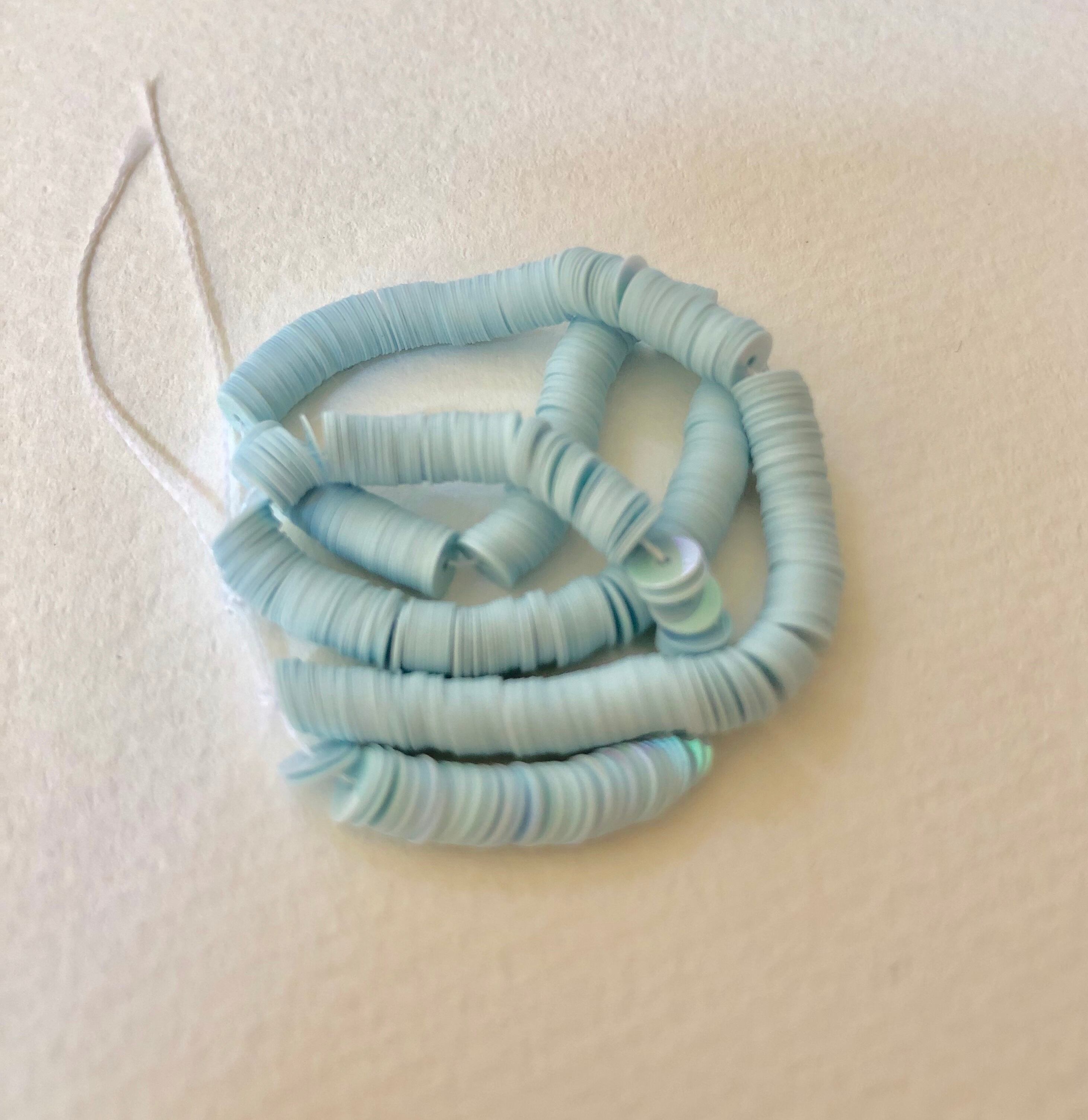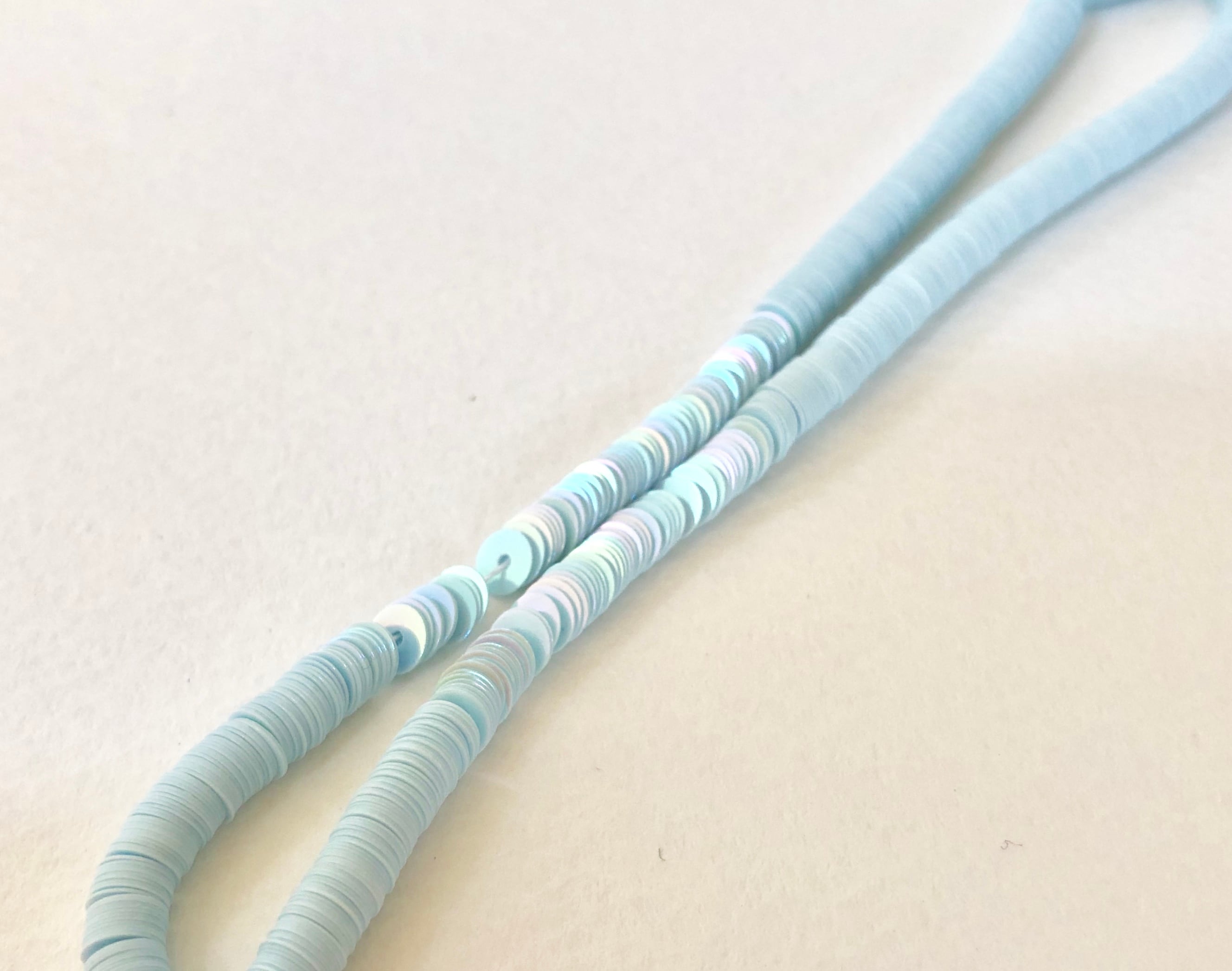 可愛らしい薄い水色です。表面が虹色に輝く、とても柔らかくて優しいお色です。不透明。
